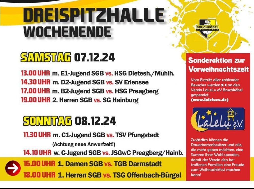 Zu dieser Doppelveranstaltung gibt es eine besondere Aktion. Denn von dem Eintrittsgeld eines jeden zahlenden Besuchers werden 2 Euro an den Verein „LaLeLu eV Bruchköbel“ gespendet. Zusätzlich gibt es für alle Dauerkartenbesitzer oder alle, die mehr spenden möchten, die Möglichkeit in der Vorweihnachtszeit etwas Gutes zu tun.