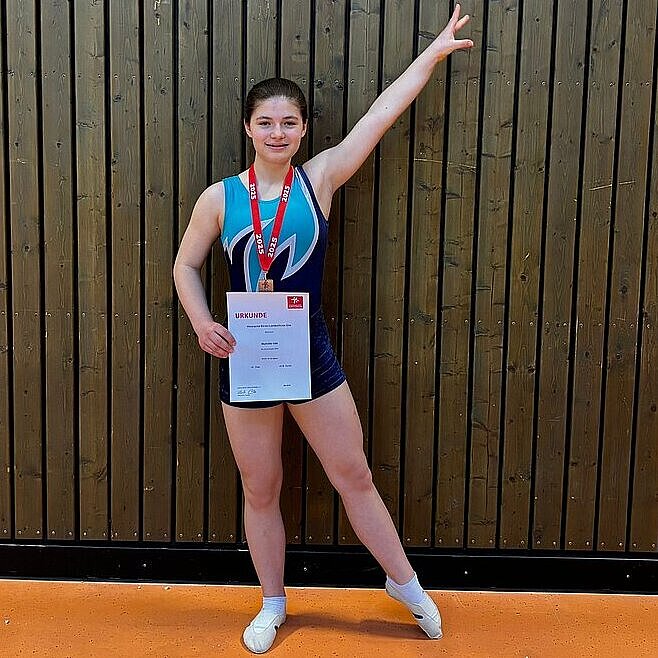 Die Trainerinnen Maya und Lara freuen sich sehr über den Erfolg von Mathilda.