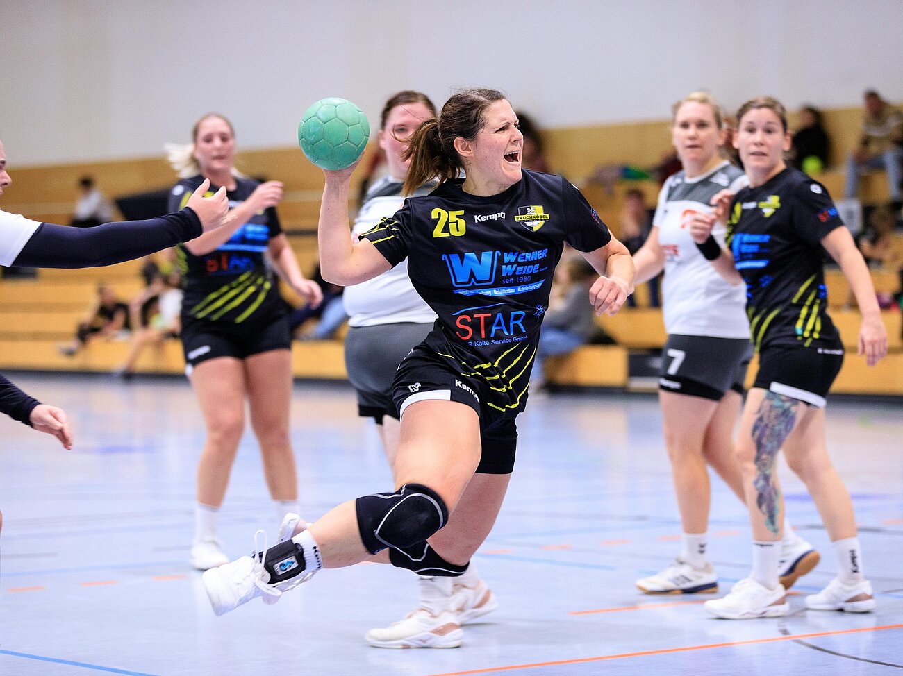 Als Favorit gehandelt zu werden, reicht aber nicht. Auf dem Platz muss es sich zeigen. Die Saison begann zunächst etwas verhalten mit einem 24:20-Sieg gegen Offenbach-Bürgel II. Danach wurden die Siege (gegen Altenhaßlau, Dreieich II und Fischborn) immer deutlicher. In Oberhessen wurde es dann wieder etwas knapper, 27:24 hieß es am Ende. Bürgel II und Oberhessen sollten aber bis heute die einzigen beiden Siege bleiben, die man als knapp bezeichnen könnte. Alle anderen der 18 Siege in dieser Runde waren dagegen deutlich oder sogar überdeutlich! Rekordergebnis war ein 39:7 in eigener Halle. In der Hinrunde wurde Kim Plitzko die überragende Torjägerin des Teams, gleich viermal warf sie neun Tor oder mehr. Aber auch Anika Nazarenus, Jessica Pinne, Ayla Muratoglu und Jessica Kuske erwischten hier und da richtige Sahnetage und erzielten acht Tore oder mehr. Trotzdem zeichnete sich auch schon im ersten Teil der Saison ab, dass die Abwehr in Verbindung mit den Torfrauen das Prunkstück des Teams sind! Überhaupt zeigt sowohl die gute Defensivarbeit wie auch die große Variabilität der Torschützinnen in der Offensive, dass der Hauptgrund für die überragenden Ergebnisse in dieser Saison das Zusammenspiel aller Mannschaftsteile und aller Spielerinnen ist. Handball ist ein Mannschaftssport und auf Teambuilding wurde von Anfang an Wert gelegt.
