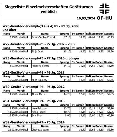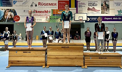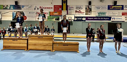 Von uns waren 9 Turnerinnen am Start und erzielten gute Platzierungen im Geräte-Vierkampf an den Geräten Sprung, St-Barren, Balken und Boden in der jeweiligen Alters- und Leistungsklasse. Insgesamt alles tolle Leistungen der SGB-Turnerinnen. Die Mädels belegten u.a. den 2. / 3. / 4. + 5. Platz in verschiedenen Wettkämpfen.