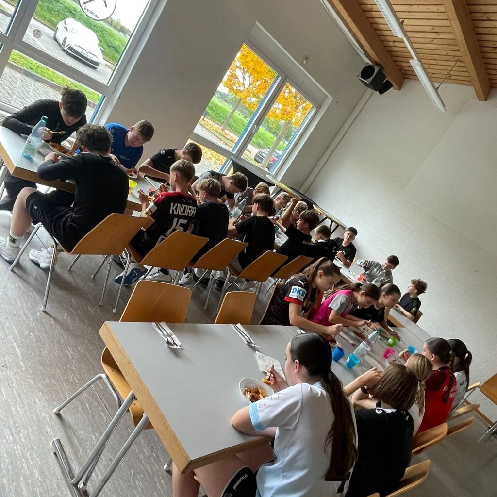 Neben dem sportlichen Ehrgeiz kam auch das leibliche Wohl nicht zu kurz – dank der unermüdlichen Helfer, die hinter den Kulissen für kulinarische Höhepunkte sorgten. Mit viel Liebe zubereitetes Obst sorgte für die nötige Vitamindosis zwischendurch, während eine köstliche Pizza am ersten Mittag die Energiereserven wieder auffüllte. Der absolute Star der Verpflegung war jedoch die Bolognese am letzten Tag, die allen Beteiligten „richtig geschmeckt hat“ und für zufriedene Gesichter sorgte. Ein großes Dankeschön an die helfenden Hände, die das Camp auch zu einem Fest für den Gaumen machten!