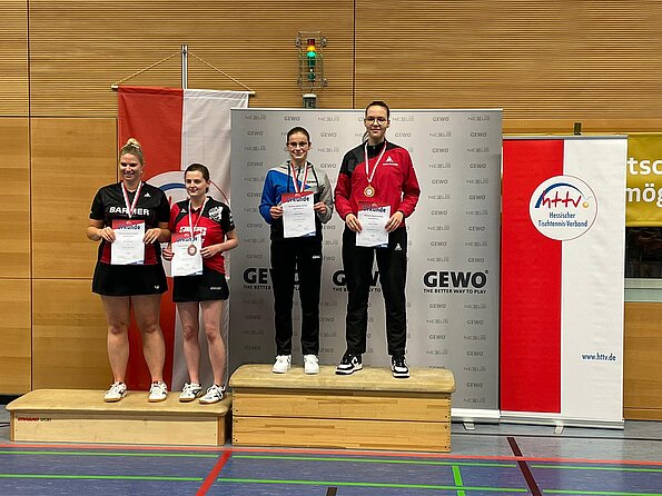 Bei der nächsthöheren Spielklasse (Damen B) gab es ebenfalls großen Grund zum Jubeln. Lana Rack erspielte sich souverän den Titel im Doppel. Im Einzel erreichte sie einen sensationellen dritten Platz und somit auch die Qualifikation zu den deutschen Meisterschaften, die im Juni in Schleswig-Holstein stattfinden. Die 13-jährige wird die SG zum Saisonende verlassen und die zweite Mannschaft des Drittligisten in Salmünster verstärken. Michelle Schmidt kam in der höchsten Spielklasse (Damen A) leider nicht über die Gruppenphase hinaus.