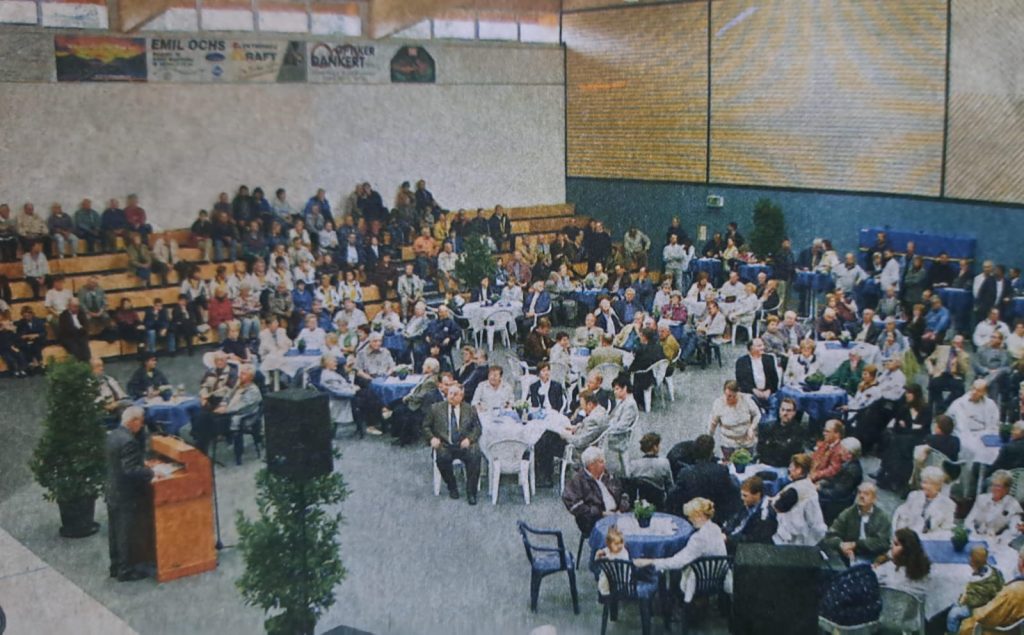 Natürlich musste dieses architektonische Meisterwerk gebührend eingeweiht werden – standesgemäß eben. Der Magistrat lud die gesamte Stadt ein, inklusive Ehrengästen, Bürgern, Sportfans und Menschen mit akuter Bratwurst-Sehnsucht. Und sie kamen – rund 300 Neugierige ließen sich das Spektakel nicht entgehen. Es gab Freibier (naja, zumindest freie Getränke), Würstchen umsonst, Musik vom legendären Alleinunterhalter „Schmidtchen Schleicher“ und Auftritte der Landfrauen sowie der SGB-Gymnastikgruppe. Sportliche Feinkost und Hausmannskost – alles in einem.
