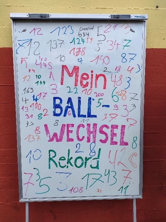 Viel Spaß hatten die Kinder bei der Aktion „Spiel mit!“ im Rahmen des Schulfests der Haingartenschule in Bruchköbel. An insgesamt acht Tischen auf dem Pausenhof der Schule konnten verschiedene Stationen an den Tischen ausprobiert werden. Das Highlight des Tages war der Wettbewerb: „Wer schafft den längsten Ballwechsel“? Dabei konnten sich die Kinder aussuchen, ob sie dies mit einet unserer Trainerinnen, einem Freund/einer Freundin oder der Familie versuchen wollten. Im Anschluss wurde der Rekord dann auf unserer Aktionstafel aufgeschrieben. Beachtenswert war hierbei, dass ein Kind über 600 Ballwechsel mit einer Trainerin schaffte. Dieses Kind hatte vorher keinerlei Erfahrungen mit dieser Sportart. Auch einiger unserer Jugendspieler waren zur Unterstützung dabei. Vor allem am Rundlauftisch kam Freude beim gemeinsamen Spielen auf. Am Aufschlagtisch konnten sich vor allem die kleineren Kinder erproben. Wer trifft mit einem Aufschlag einen Becher auf dem Tisch? Mit etwas Glück gab es hier sogar etwas zu gewinnen!