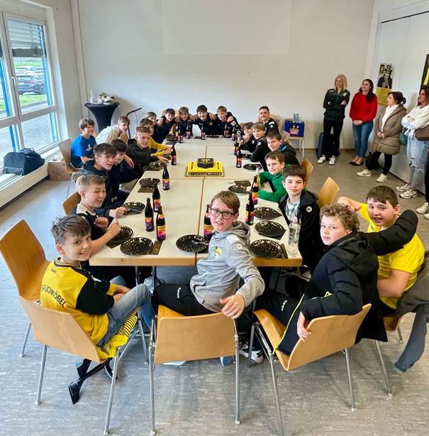 Nach dem Spiel traf man sich dann noch einmal zum Abschluss in der Vorhalle, wo man mit Pizza und Spezi die Saison ausklingen ließ. Als Überraschung gab es noch von Bastis Mutter einen Meisterkuchen.