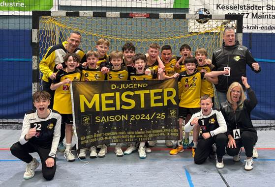 Am letzten Spieltag konnten sowohl die männliche D1 und D2 zu Hause gegen Buchberg die Meisterschaft feiern. Den Anfang machte die D1, welche um 10.00 Uhr gegen die JSG Buchberg 1 antrat. Wie im Hinspiel agierte der Gast mit langen Ballpassagen und wenig technischen Fehlern, dies führte dann auch zu einer torarmen ersten Halbzeit. Die Gelb-Schwarzen standen in der Abwehr sehr sicher und ließen wenig zu. Im Angriff fehlte es dann aber etwas an Geduld, da man solange nicht mehr an den Ball herangekommen war. In den ersten Minuten konnte man seine Chancen noch nutzen und man konnte ein 5:1 vorlegen. Doch dann schlichen sich technische Fehler ein oder es wurden gute Chancen fahrlässig vergeben. Dies sollte sich etwas rächen, da Buchberg immer bis oder über den Zeitspiel im Angriff agierte und man nur selten an den Ball kam. Da die Abwehr aber meistens aufmerksam blieb, konnte die JSG kein Nutzen aus dem vielen Ballbesitz ziehen. So ging es mit einem 7:4 in die Halbzeit, welches die Überlegenheit der Bruchköbler jedoch nicht widerspiegelte. In der zweiten Hälfte änderte sich nichts am Spielverlauf. Buchberg konnte zwar das erste Tor erzielen, doch das wars dann aber auch schon. Bruchköbel nutzte nun seine Chancen konsequenter und konnte nun seine Führung ausbauen. Beim Stande von 12:5 nahm der Gast in der 27. Minute eine Auszeit. Dies änderte jedoch nicht viel. Die Gelb-Schwarzen ließen in der Abwehr weiterhin nicht viel zu und der Gast kam immer wieder ins Zeitspiel. Da auch noch zwei Siebenmeter nicht genutzt wurden, konnte die Heimmannschaft sich immer mehr absetzen und der Gast erst in der 37. Minute ihr zweites Tor erzielen. In den letzten Minuten erlaubte man der JSG noch ein paar Chancen, da man nicht mehr konsequent im Angriff spielte und so einige Bälle herschenkte. Da war das Spiel aber längst gelaufen. Am Ende gewann man mit einer konzentrierten Leistung und einer guten Deckung verdient mit 20:8. Vielen Dank auch an die Schiedsrichterin, die das Spiel souverän leitete.