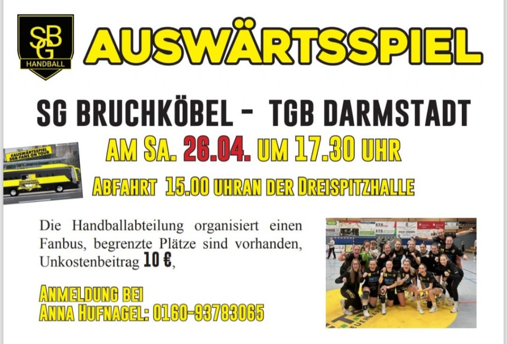 Am Samstag (26.4.) sind alle fünf Aktiventeams der SGB im Einsatz. In der Dreispitzhalle spielen um 17 Uhr die 2. Damen gegen die TGS Seligenstadt und um 19 Uhr die 3. Herren gegen die HSG Isenburg/Zeppelinheim. Um 17:30 Uhr spielen die 1. Damen bei der TGB Darmstadt, zu diesem Spiel ist die Mitfahrt im Fanbus möglich!
