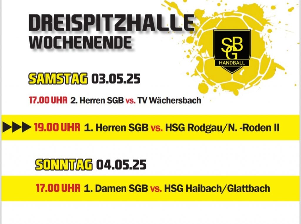Zum Abschluss noch ein paar Hinweise für den Wonnemonat Mai. Die traditionelle Biergartenereröffnung auf dem Handballplatz ist am 1. Mai, das letzte Heimspiel-Wochenende ist am 3. und 4. Mai, Stadtradeln mit dem Team SGB-Handball beginnt am 17.5. und die Mitgliederversammlung mit Neuwahl des Vorstandes ist am 19.5. in der Waldschänke. Dazu kommen weitere Jugend-Qualiturniere, das Ortsvereinsturnier, der Biergarten zum Vatertag, usw. usw.