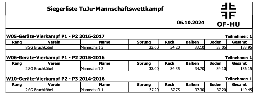 Insgesamt 90 Mannschaften von 28 Vereinen waren am Start. Für viele Turnkinder ist es das erste Mal, dass sie in einer Mannschaft mit einheitlichem Turnanzug gemeinsam antreten. Eine Mannschaft besteht aus minimal 3 und maximal 6 Turnerinnen, von denen maximal 5 je Gerät an den Start gehen dürfen. Die Mädchen turnen ausschließlich an den Geräten Sprung, Reck/Barren, Bank/Balken und Boden. Die besten drei Übungen kommen dann in die Wertung.