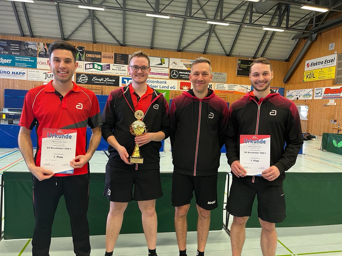 In einem spannungsgeladenen und nervenaufreibenden Finale der Bezirkspokalmeisterschaften der Bezirksklasse setzte sich die zweite Herrenmannschaft der SG Bruchköbel gegen den favorisierten TSV Langgöns 1898 durch. Nach erfolgreichen Vorrundenspielen gegen den SSV Lardenbach/Klein-Eichen, TTV 1979 Heimertshausen, TSV 2006 Lützellinden und Hünfelder SV 1919, folgte im Halbfinale ein souveräner 4:0 Sieg gegen den TTC 98 Hain-Gründau II.