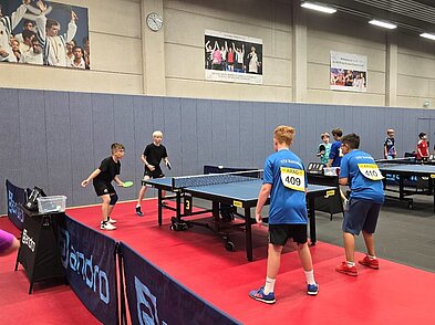Das Rahmenprogramm des Gastgebers sorgte für jede Menge Abwechslung und Unterhaltung. Die Kinder konnten sich zwischen den Wettkämpfen beim Kistenklettern, auf einer Hüpfburg, an verschiedenen Tischtennistischen und beim Bemalen von Tischtennisschlägern vergnügen.