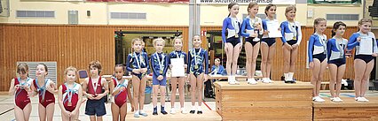 Mannschaft P1-P2, Jahrgänge 2017-2018, 4 Turnerinnen den 3. Platz