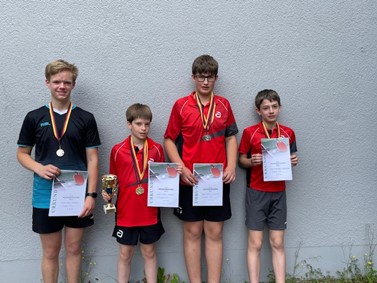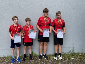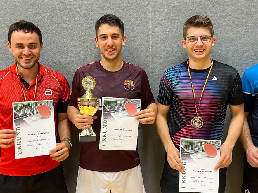 Schließlich erreichten Marten Sternitzke und Franziskus Horstmann jeweils den 3. Platz; den 2. Platz belegte Lukas Gerlach. Den Sieg an diesem Samstag ließ sich Julian Schusser nicht nehmen. In der Doppelkonkurrenz ging der 2. Platz an Marten Sternitzke und Fabian Schmidt. Den Sieg errang erneut Julian Schusser mit seinem zugelosten Partner Jonathan Volbers. Keiner der Teilnehmer ging leer aus: Jeder erhielt eine Urkunde und die Podestplatzierten strahlten mit ihren Medaillen in der Sonne. Julian durfte sich in der Einzelwertung über einen wunderschönen Pokal freuen.