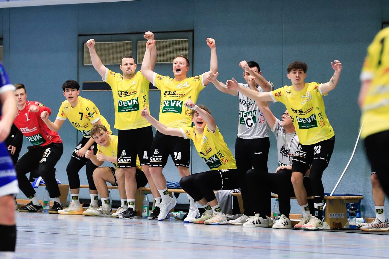 Superwichtig war der Auswärtssieg unserer 1. Herren beim Tabellennachbarn in Obernburg. Nach furiosem Beginn der SGB mit einer hohen Führung (8:2 in Minute 13), wurde das Spiel von Minute zu Minute spannender bis hochdramatisch. Als Bruchköbels Toptorjäger Sergej Zutic kurz vor Schluss wegen der 3. Zeitstrafe vom Feld musste, hätte das Spiel zu Ungunsten der Gelbschwarzen noch einmal kippen können. Doch unsere Jungs behielten die Nerven und in der hochspannenden Schlussphase avancierte Spielmacher Jonah Wolff zum Matchwinner und war an den entscheidenden Treffern zum Auswärtssieg beteiligt. Unsere Männer haben nun eine tolle Serie von vier Siegen aus den letzten fünf Partien hingelegt. Am nächsten Sonntag ist wieder Hochspannung in der Dreispitzhalle angesagt, ab 17 Uhr geht es gegen die HSG Breckenheim/Wallau/Massenheim!