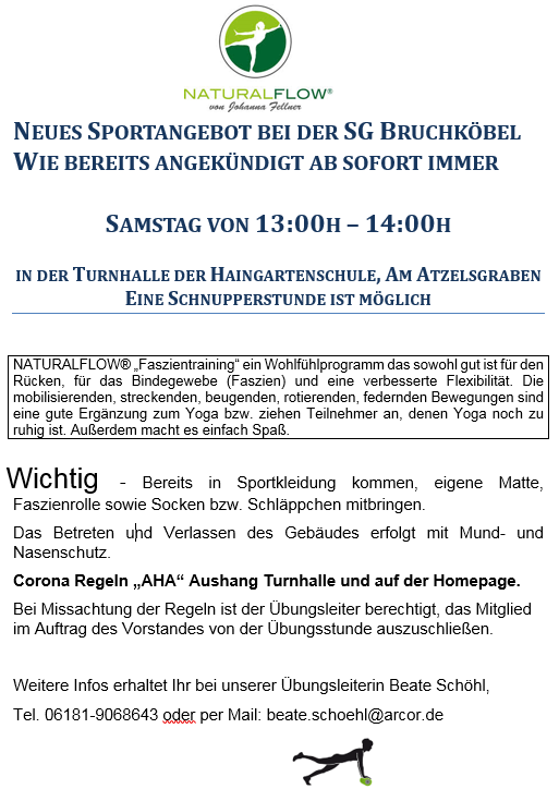 Du bist hier: SG Bruchköbel » Turnen-Leichtathletik-Gymnastik » Neue Sportangebot: NATURALFLOW® – ab jetzt jeden Samstag